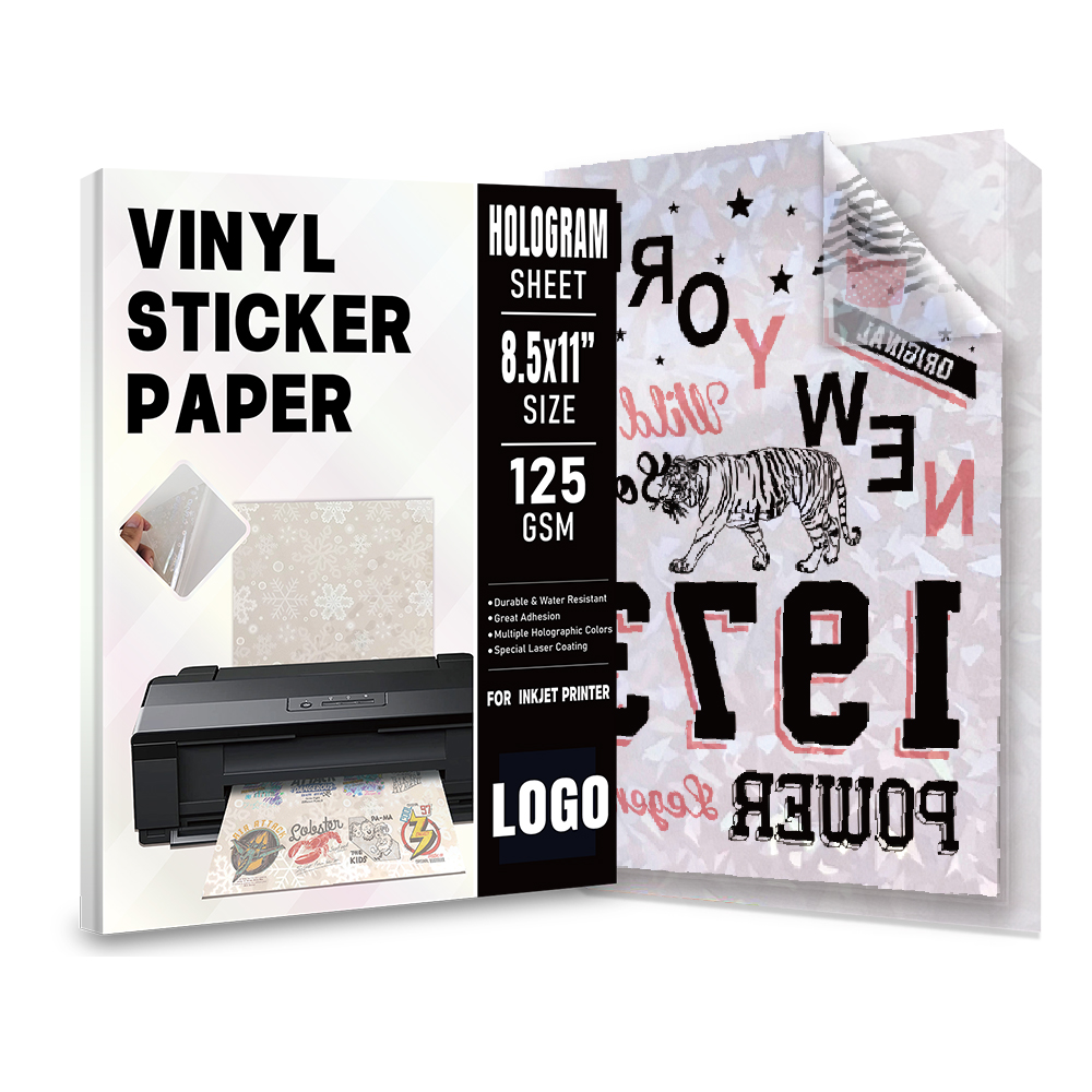 Le papier autocollant vinyle imprimable imprimante jet d’encre de haute qualité fonctionne avec des imprimantes jet d’encre pour permettre aux utilisateurs de personnaliser des autocollants, des autocollants, des étiquettes et divers motifs imprimés. Une couche protectrice spéciale est appliquée à ce papier pour offrir des images vives et nettes et durables. Le matériau convient à toutes les catégories d’utilisateurs, des clients particuliers aux professionnels.